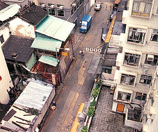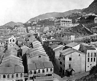 This hilly area of Hong Kong was a favourite haunt of thieves and robbers in the 1840s, but law and order was restored when a police station and barracks were built in the neighbourhood, which was then called Tai Ping Shan, denoting peace. As more and more Chinese moved into the area, a street lined with houses on both sides sprung up along the slope of the hill: Tai Ping Shan Street remains as steep and narrow as it was in those days.
