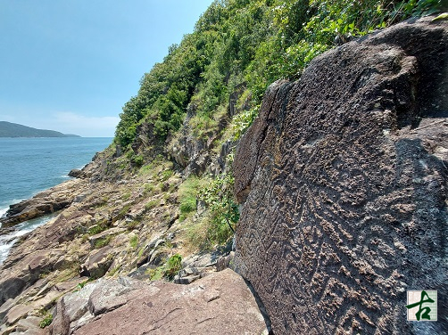 The rock carving at Cape Collinson in the Eastern District of Hong Kong Island was discovered in October 2018. It is located on a cliff, about 11 m above sea level. A combination of geometric and sinuous designs were carved on a fairly flat weathered surface of a natural outcrop measuring about 160 cm in height and 260 cm in width. The designs include elements closely resembling those on Bronze Age stamped geometric pottery and the other eight rock carvings in Hong Kong. In particular, the rock carvings at Cape Collinson, Big Wave Bay and Tung Lung Chau may form a stylistic sub-group worthy of further study due to their proximity to one another and the similarity of their designs. The study of the Cape Collinson rock carving’s stylistic and spatial relationships with other rock carvings may help shed light on the maritime people whose society once flourished in the early days of Hong Kong.