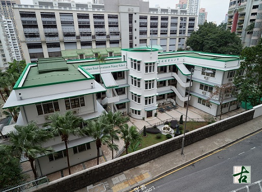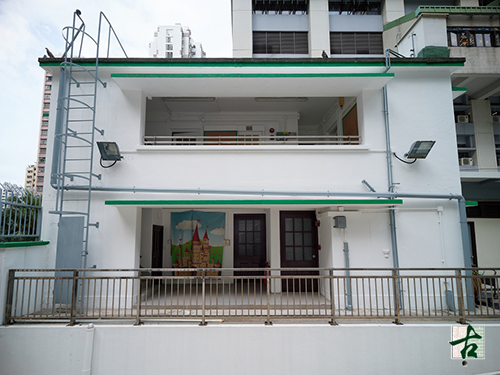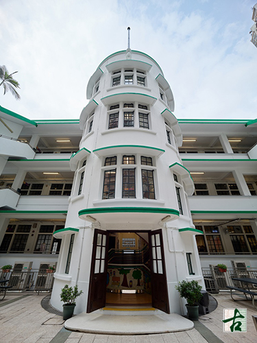The campus’ main building is a three-storey concrete structure from the ground to roof levels with a basement floor underneath. It has an E-shaped plan, comprising a long centre portion and a wing on each end. The main building is a prominent example of Streamline Moderne buildings in Hong Kong, characterised by curves and horizontal lines and being functional with minimal ornamentation. Besides, the air-raid shelters in the main building, which bore witness to the Japanese invasion, are quite rare in the existing historic buildings in Hong Kong. The timber doors and timber/steel-framed windows, cement tiles with terrazzo finishes, timber floorboards and the spiral staircase in the building are examples of historic building fabrics and materials.