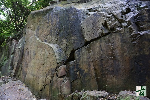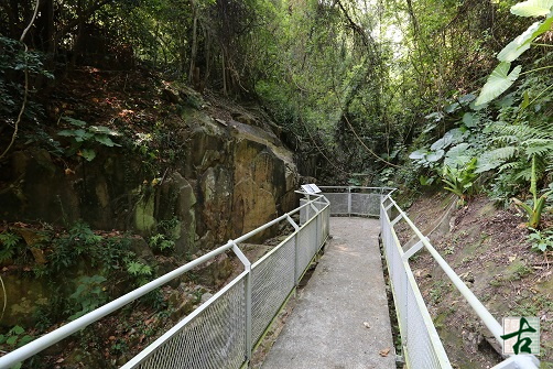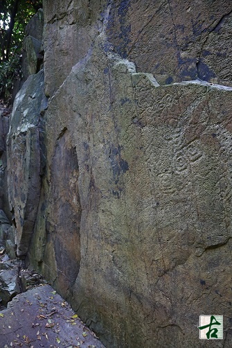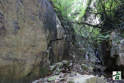 Rock Carvings at Wong Chuk Hang are located beside a stream course at Wong Chuk Hang on Hong Kong Island. Three main groups of carved patterns can be recognised. They consist of meandering and spiral designs suggesting stylised animal eyes. It is most unusual that they stand at least a kilometre from the sea, unlike other rock carvings in Hong Kong, although they still overlook 'a small expanse of water', i.e. the stream running below them.
