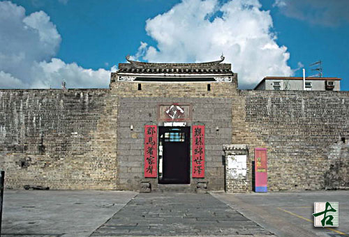 Kun Lung Wai, also known as San Wai, is one of the five walled villages built by the Tang clan of Lung Yeuk Tau, Fanling. It is also a very well-preserved walled village in the area. The Tang clan of Lung Yeuk Tau first settled in Fanling in the 14th century. According to the Chinese characters “Kun Lung, dated in the cyclical year Jiazi in the Qianlong reign” engraved on the stone lintel of the gate tower, the outer walls were built in 1744. Kun Lung Wai is enclosed with grey-brick walls on all four sides. The gate tower, which serves as the main entrance to the village, is situated in the middle of the southwest wall. The design of the tower, which comprises two free-standing, separate halls, is unusual. The tall, narrow front hall, with its facade made of grey bricks and granite blocks, has a beautifully decorated main ridge.