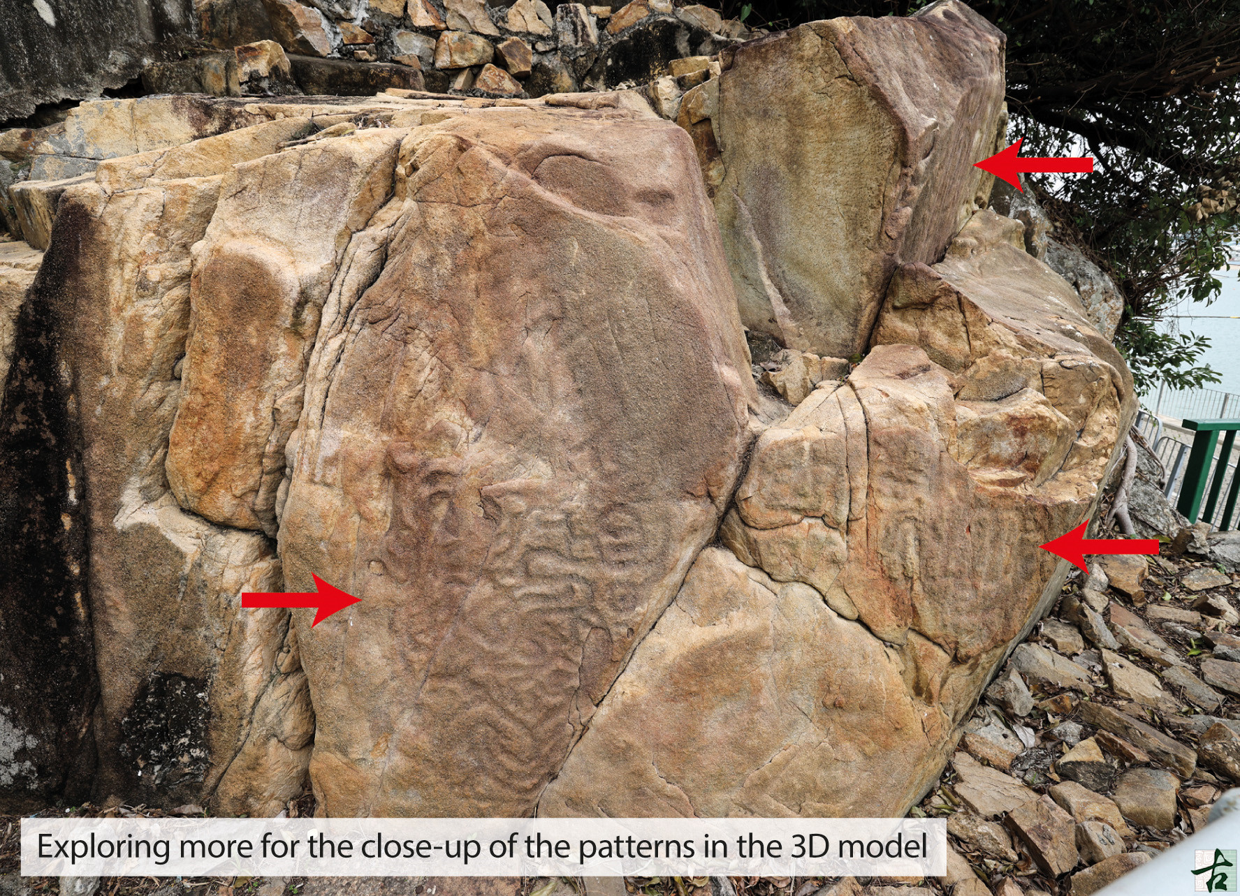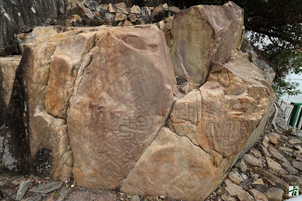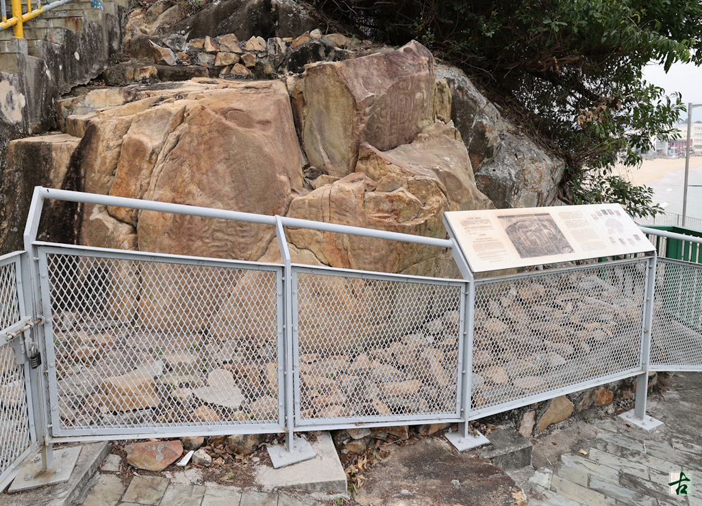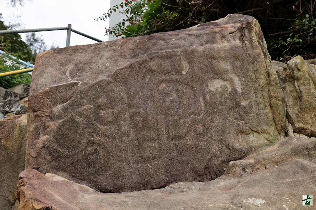 Cheung Chau Rock Carvings were reported by a geologist in 1970, the same year when Big Wave Bay Rock Carving was discovered. They are situated at the south-eastern end of the tombolo forming the island, immediately below the Warwick Hotel. They consist of two groups of similar design with several carved lines surrounding small depressions. The second group was not completely exposed when found and could only be fully revealed after removal of soil.