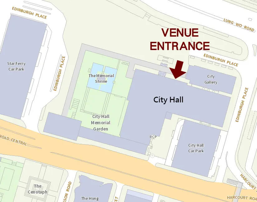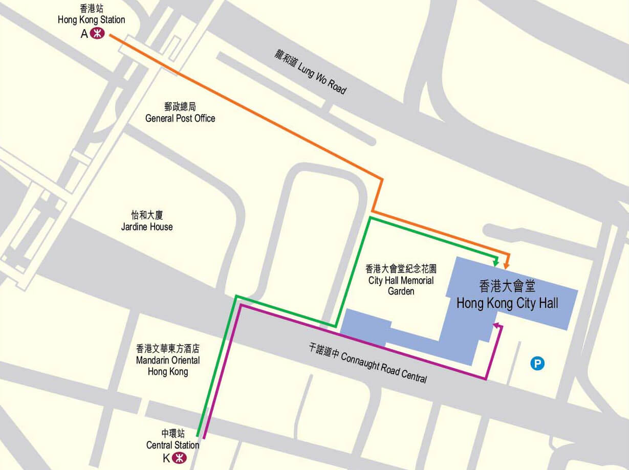 Hong Kong City Hall is situated at No. 5 Edinburgh Place, Central, Hong Kong.