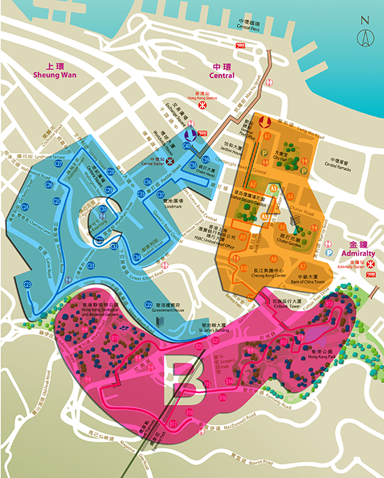 中區位於香港的中心地帶,自1841年香港島由英國管治後便發展起來,不少西式建築亦相繼興建。中區線涵蓋40項歷史建築及舊址,包括一些已拆卸的重要建築物原址,讓旅遊人士可緬懷昔日中區一些著名的建築。