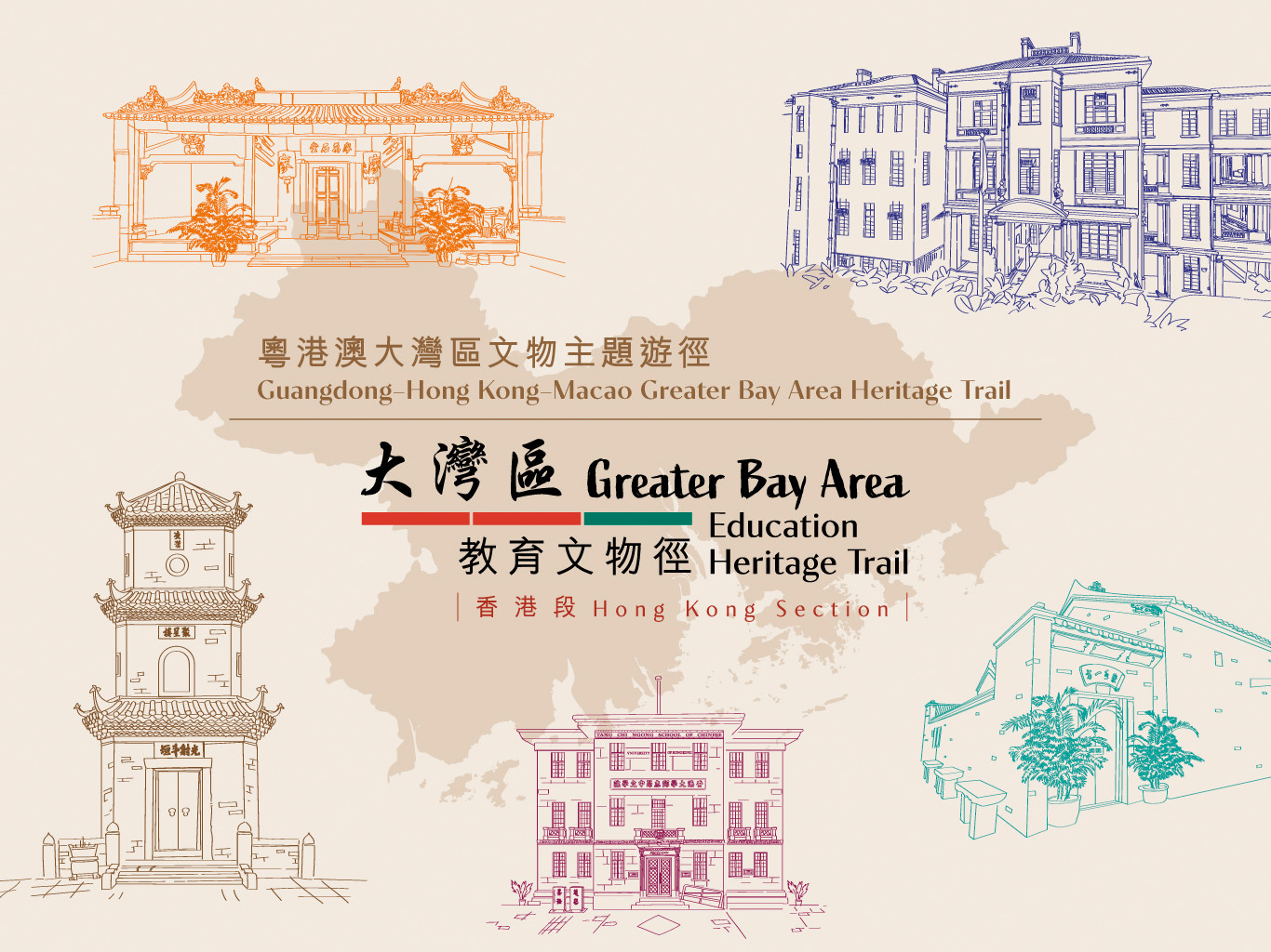 發展局古物古蹟辦事處從一百多項法定古蹟和超過一千項具評級的歷史建築中,挑選三十七項,共四十八座歷史建築加入粵港澳大灣區文物主題遊徑中的大灣區教育文物徑(香港段),並得到相關的業權人支持。建築歸納為四個主題,即「科舉登第:嶺南傳統書院建築風格與藝術」、「人與情:培育國家人才」、「百年樹人︰辦學精神傳承」和「共同抗戰:保衛家國」。參觀人士可透過歷史建築説明牌上的二維碼,連結至古物古蹟辦事處網頁的文物徑介紹,利用該建築的粵語、普通話及英語的語音導賞,隨時隨地欣賞文物徑上的建築和聆聽它們的故事。這條跨地域的粵港澳大灣區文物遊徑,是富有生命力的,它的内容及選點會不斷擴充和深化,期望參觀遊徑的民眾,能給我們提供更多關於每座歷史建築的故事,讓三地民眾實地感受同根同源的文化和血濃於水的情懷。