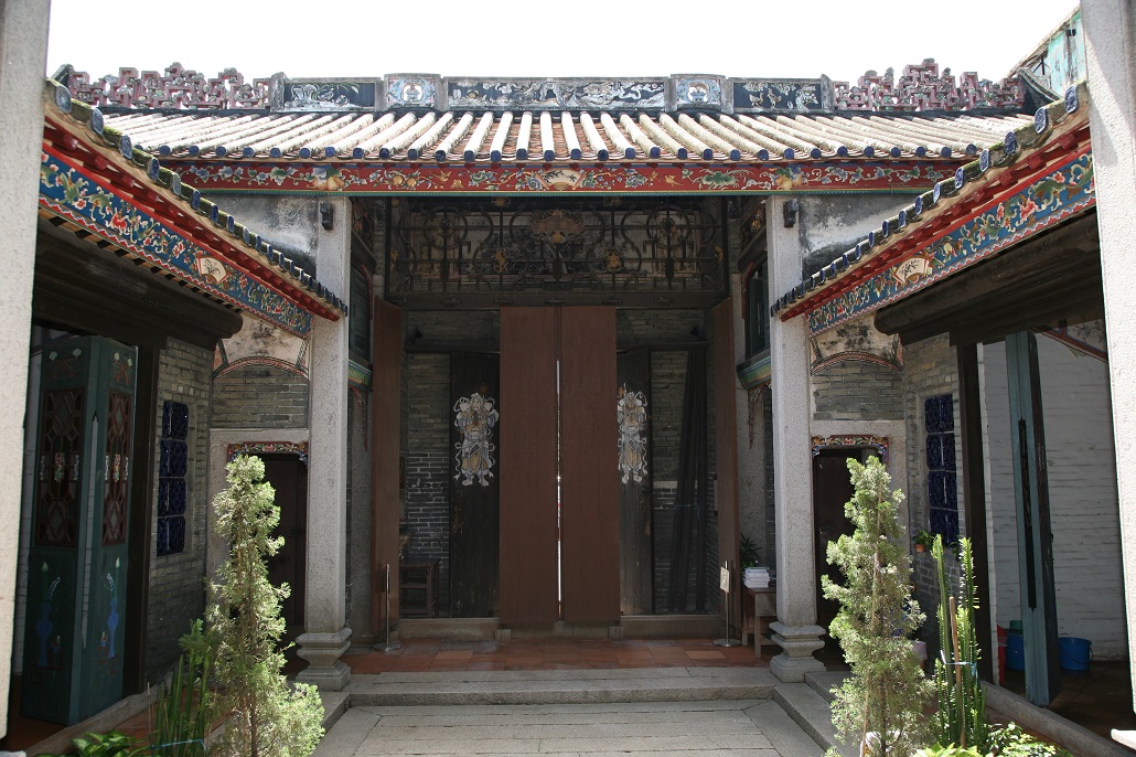 覲廷書室屬兩進三開間一天井布局,以青磚築砌。後進明間供奉祖龕,書室内的木雕、石雕、壁畫和灰塑皆精巧細緻,是昔日工匠巧手之作,充份表現嶺南傳統建築的地域特色。