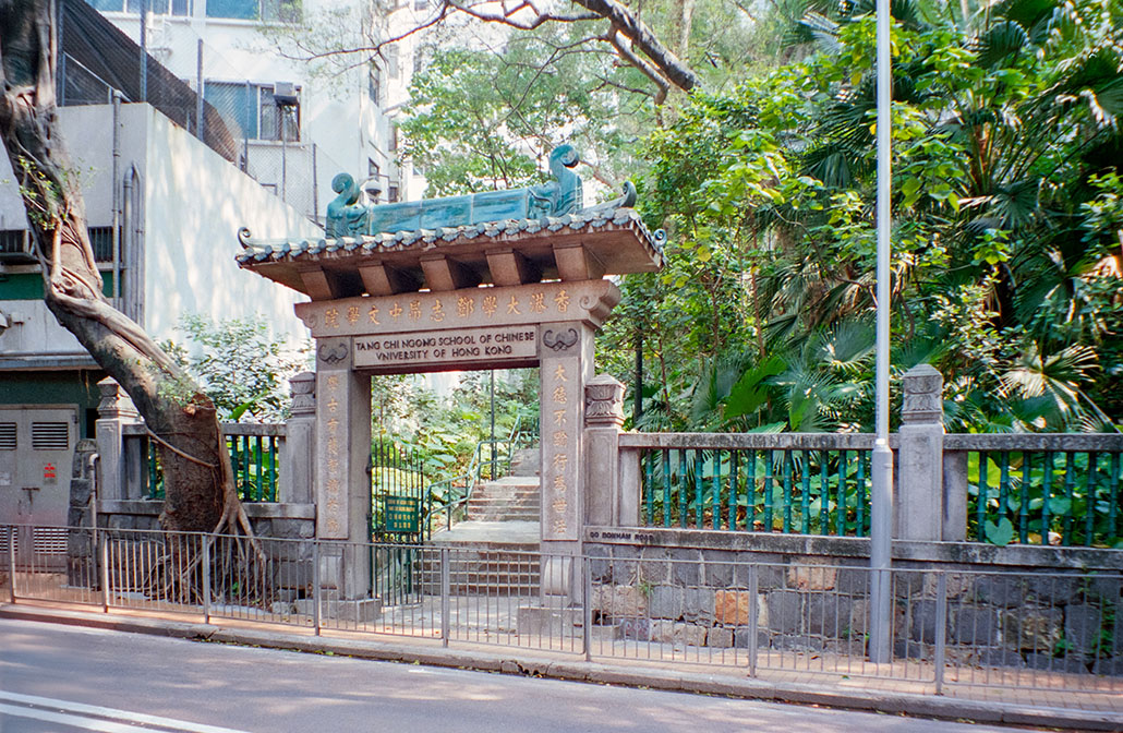 隨鄧志昂樓外的小徑蜿蜒而下,可到達般咸道上香港大學鄧志昂中文學院的石牌樓;兩側所題的對聯︰「大德不踰,行為世法;學古有獲,業精於勤」,是昔日創辦中文學院的宗旨,勉勵學生於個人品格及學術修養上要追求成就。