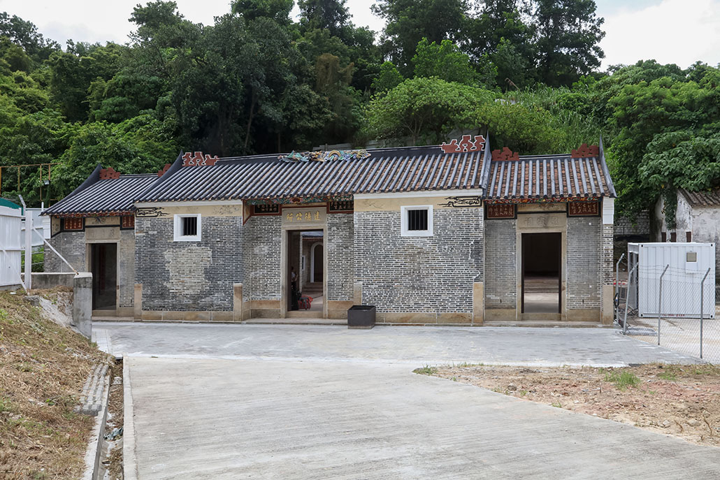 達德公所位於元朗屏山,由鄧勳猷及族人於清咸豐七年(1857)興建,供更練和「達德約」成員聚會議事,以及作屏山市管理處。公所以青磚築砌,配以金字屋頂,牆基以花崗石建造。三個入口上方繪有孔雀和喜鵲等吉祥動物的壁畫及字畫。封簷板雕工精細,刻有竹子、牡丹和梅花等吉祥圖案;屋脊兩端則飾有幾何圖案灰塑。公所前進掛有彩門,飾以花卉和中國民間故事圖案,並刻有「福有攸歸」四字。