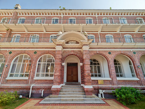 本部大樓由亞洲著名的利安建築師事務所的Alfred Bryer設計。他的設計不僅包括豐富的新古典建築特色,同時呈現具原創性的本地元素。這座紅磚大樓,樓高三層,比例勻稱,由多條古典的愛奧尼式花崗石石柱支撐,布局工整。大樓以正面中央的鐘樓作為中軸線,兩端各建角樓一對。入口門廊和東、西兩側的女兒牆均飾有三角形山花。