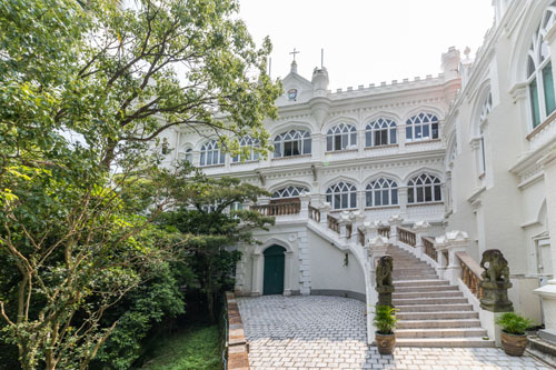 大學堂內有一條鑄鐵螺旋樓梯,是在巴黎製造,連接三個樓層。昔日的小聖堂現用作飯堂,它有繫樑屋頂,支撐金字屋頂的建造,屋頂以中式瓦片鋪砌;飾有窗花格的哥德式窗戶和玫瑰窗也是小聖堂的重要建築特色。小聖堂下面的活動室原是地下室,巨大的石圓柱和厚重的拱墩,及肋狀拱頂,不僅支撐著上面小聖堂的重量,更營造了安寧和莊嚴的氣氛。