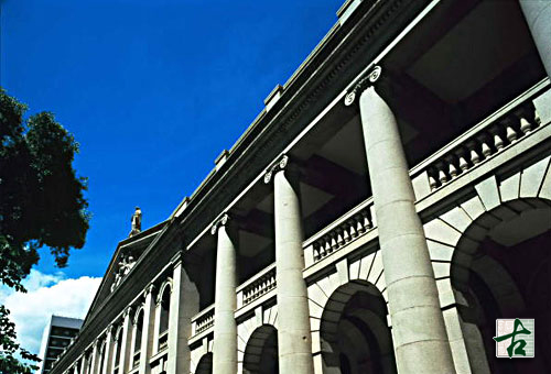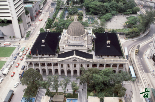 舊最高法院大樓坐落於填海區,屋基由數以百計的杉樹樁組成,於一九一二年一月十五日由當時的總督盧押爵士宣告正式啟用。這座三層高花崗石大樓,採用新古典主義派的建築風格,地面以愛奧尼亞式石柱環抱。最具特色的是中央部分的三角形山牆,山牆頂部矗立著一座希臘泰米斯女神蒙眼雕像,用以代表公義。建築物在一九八五至二〇一一年期間供立法會(一九九七年七月以前稱為立法局)使用。經修繕後,大樓自二〇一五年開始由香港終審法院使用。