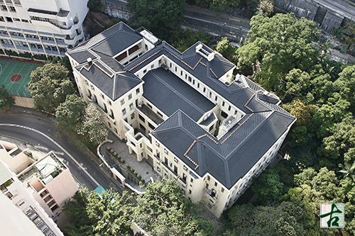 主樓樓高四層,由四翼組成,學校禮堂圍攏於中央。牆身用以麻石及紅磚築砌,屋頂為金字形木桁架及中式瓦面結構。這座西式建築物的設計概念和布局與中國傳統合院式建築風格相類似,別具特色。