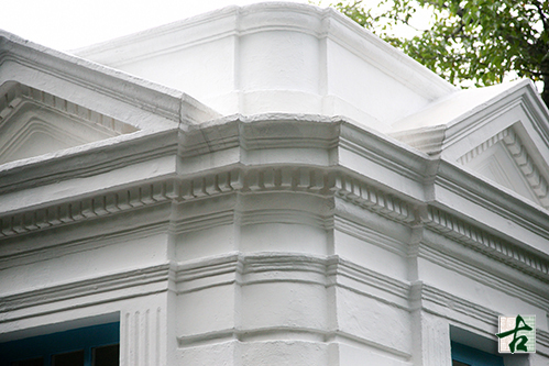 舊總督山頂別墅守衛室屬新古典建築風格設計,布局嚴謹。面向柯士甸山道的正面外牆呈長方形,牆角並非成直角,而是圓角,十分美觀悅目 。守衛室正面外牆上端有三個小三角楣飾,令這座細小但極具意義的建築物,在外觀上倍添古典建築特色。