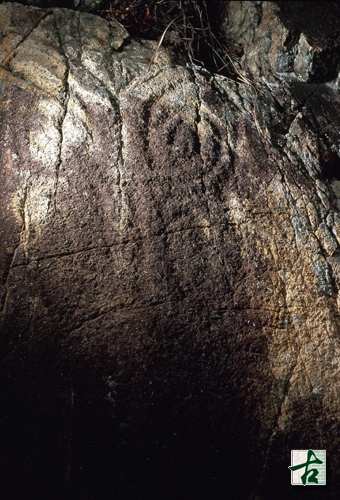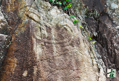 此石刻發現於一九七六年。位於滘西洲西北岸。該處幾無陸路通達。石刻上的紋飾飽經風雨侵蝕,尤以石刻下半部為甚。如仔細觀察,仍依稀可見獸形紋樣。石刻離開最高水位約二米,就同類型石刻的位置而言,這是一個頗低的位置。