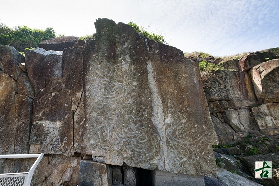 這是本地最早有文獻記載的石刻。王崇熙於一八一九年編制的《新安縣志》有「石壁畫龍,在佛堂門,有龍形刻於石側」的記載。此石刻高約1.8米,長約2.4米,為現時香港境內所知最大的石刻。