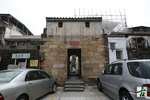 麻笏圍原築有圍牆,四角則建有角樓。因昔日發展需要,大部分圍牆及四個角樓已遭拆卸,只留下這極具歷史價值之門樓及部分圍牆。門樓紅砂岩石額刻有「欝(同『鬱』)葱」二字,寓意草木茂盛之地。