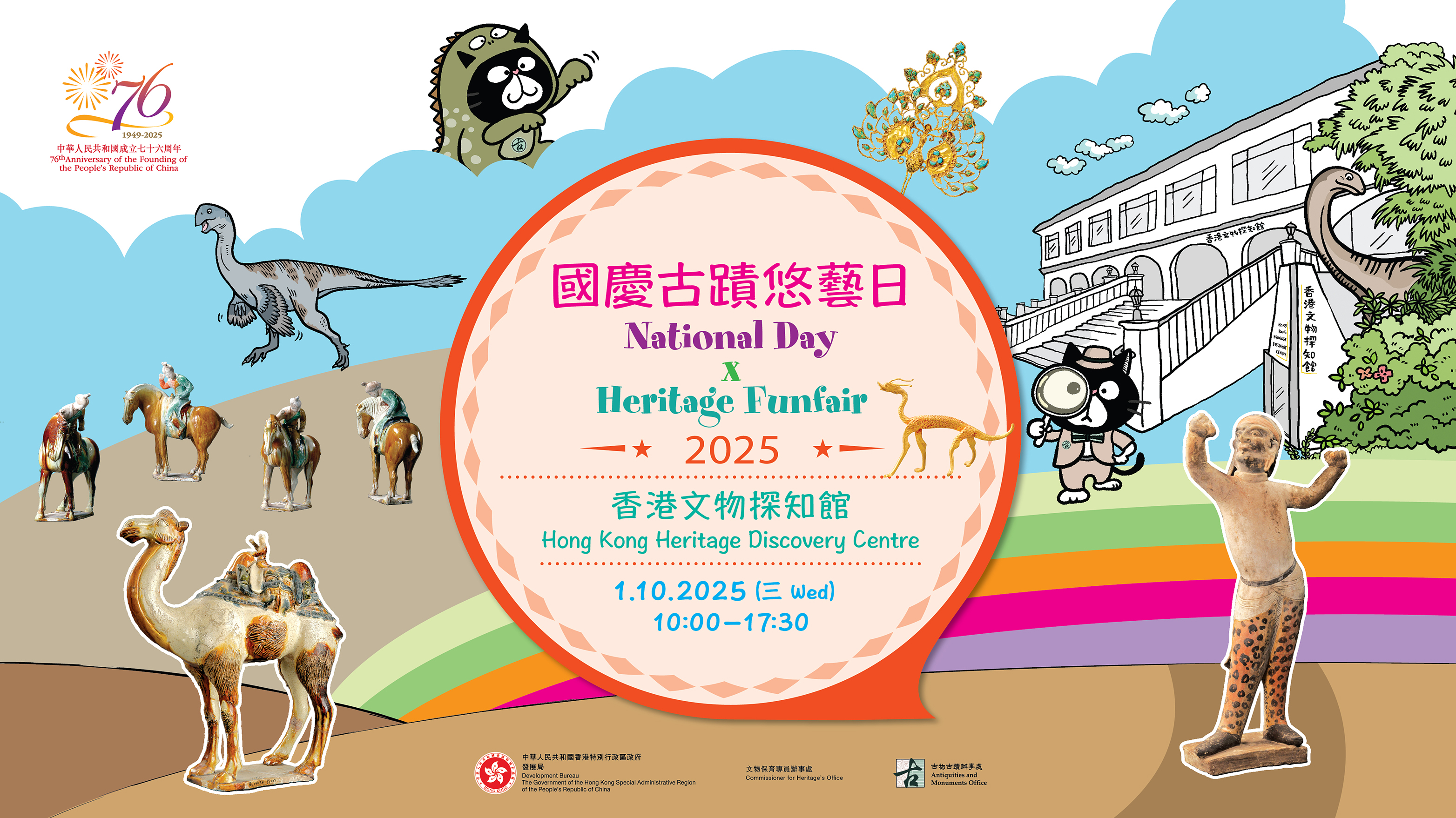 發展局古物古蹟辦事處呈獻「國慶古蹟悠藝日2025」,同賀國慶。市民、遊客完成與文物古蹟有關的指定任務後,便可換領獨一無二的小禮物,實行睇展覽、玩遊戲,寓學習於娛樂!精彩的十.一國慶假期就在尖沙咀香港文物探知館!