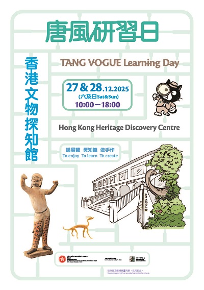 發展局古物古蹟辦事處為您準備了一連兩天於2025年12月27及28日,在香港文物探知館舉行的「唐風研習日」。研習日將有多項工作坊、示範及活動,例如唐代茶藝示範、粉彩繪圖、恐龍泥膠工作坊等。只要完成指定活動、集齊印章,便可換領獨一無二的限量禮物。喜歡看展覽、長知識和做手作的您,絕對不容錯過這次「唐風研習日」。