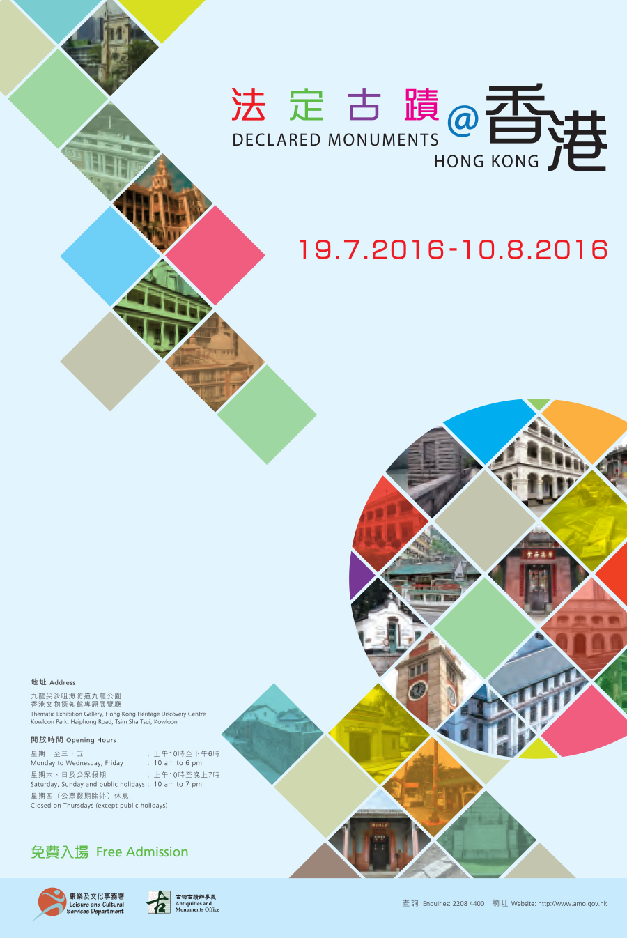 | 開放時間: | 星期一至三、五:上午10時至下午6時 星期六、日及公眾假期:上午10時至晚上7時 星期四(公眾假期除外)休館 |